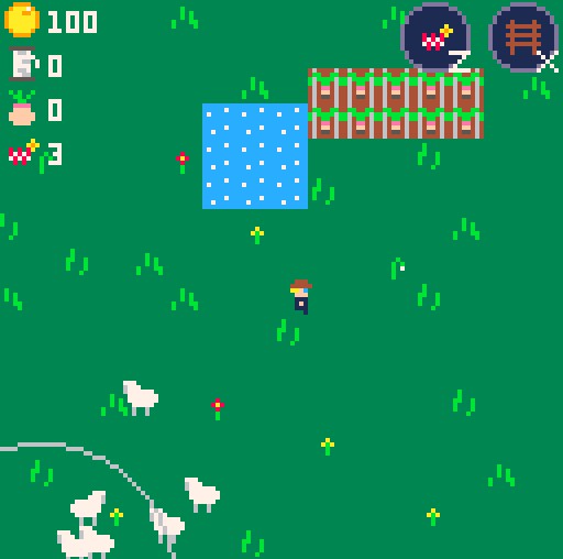 Your name is Billy, you're a 16 year old farmhand sent out to help old man Garson. He's a bit rough around the edges, but otherwise a fine man. He's asked you to tend to his sheep come wolf season. That's a tall order: his 7 sheep are his prized possessions, and all you've got to defend them from the 10 waves of hungry wolves is some shoddy fences, a sprinkler and some firecrackers! What's more: sheep run around all over the place, making it impossible to fence them all in! Time to make some tough calls... that's just Hardcore Herding!